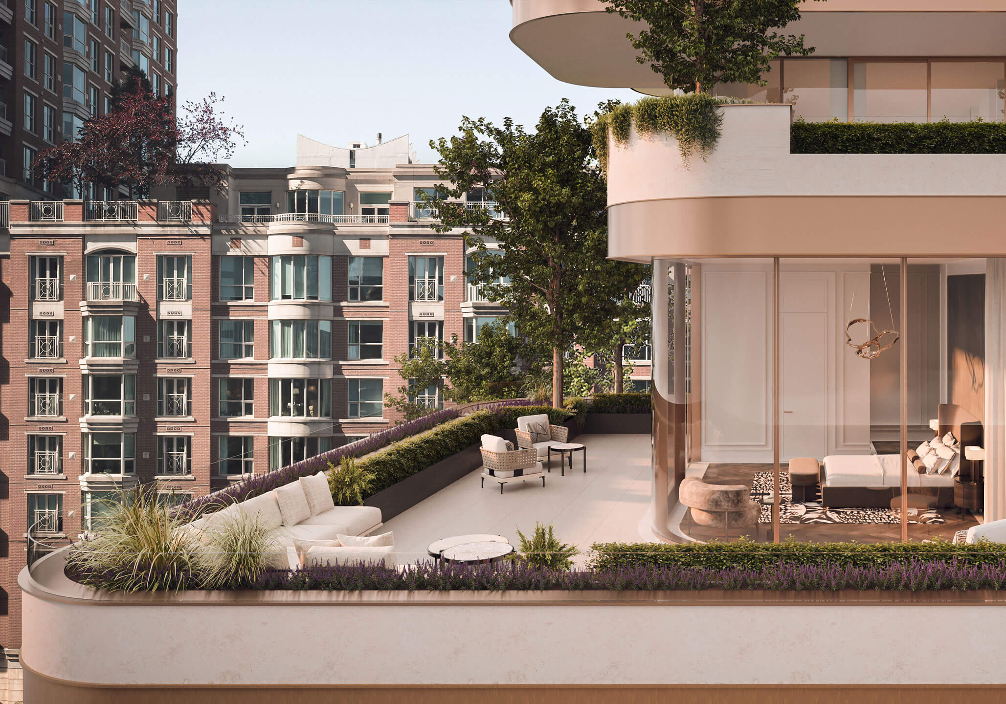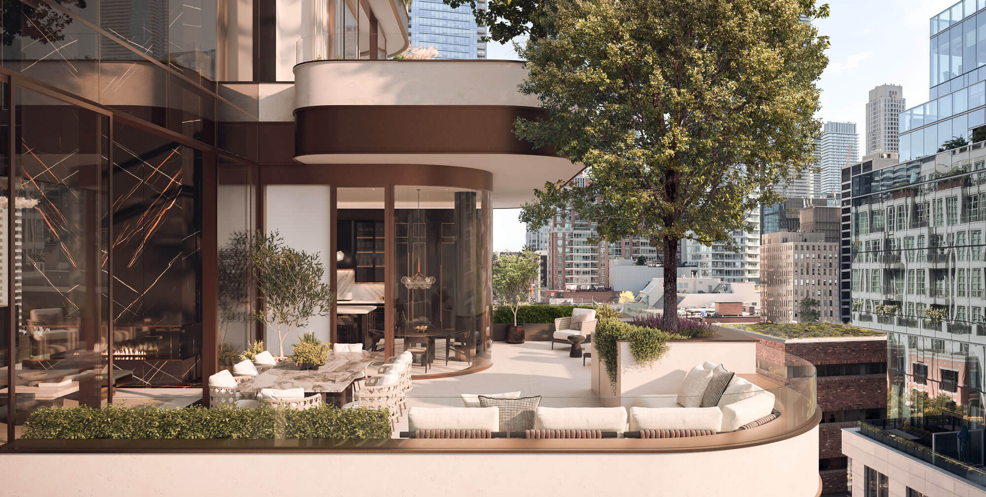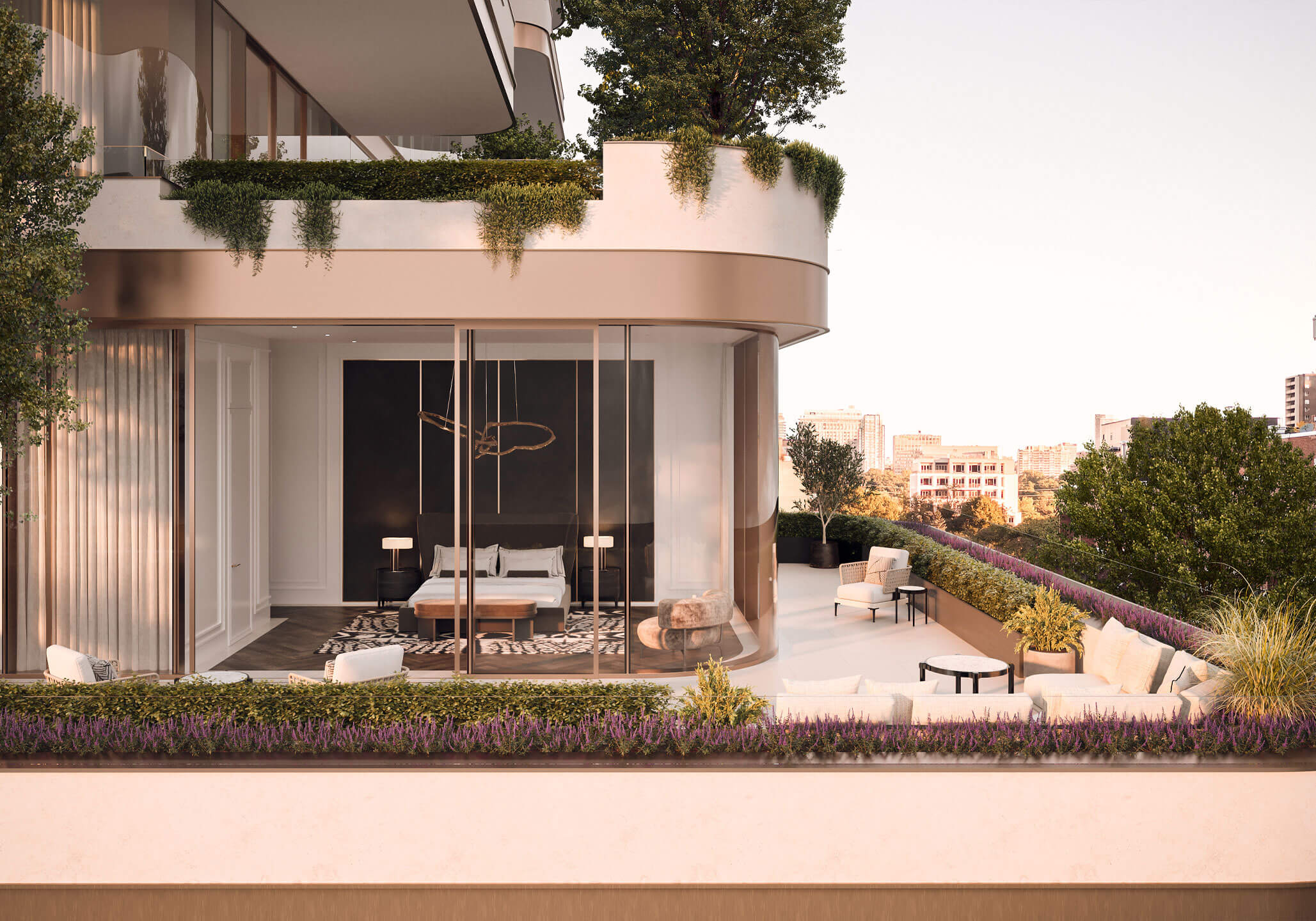 The expansive and inviting terrace extends your living space out into a personal oasis, anchored by feature trees and greenery. A picturesque backdrop that lets you bask in a rarified atmosphere, with the city lights below.
